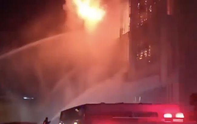 У соцмережах поширюються відео з місця трагедії, на яких видно, як рятувальники намагаються приборкати вогонь.