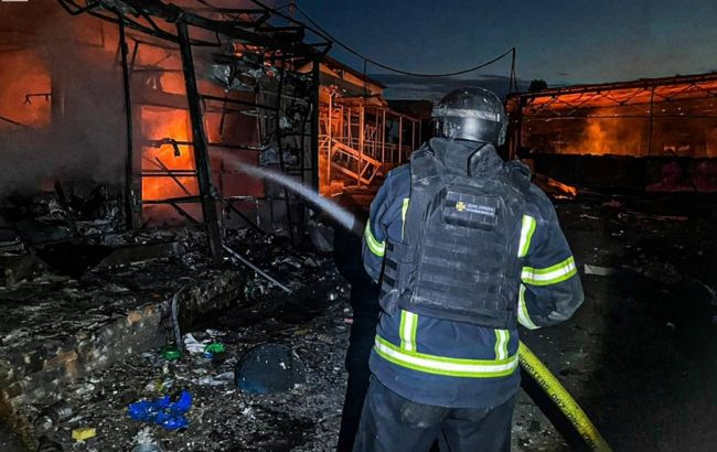 У Харківській області внаслідок атаки росіян за допомогою ударного дрона типу “Шахед” спалахнула пожежа на ринку в селищі Великий Бурлук.
