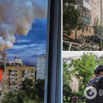 На кадрах також видно, що літак розбився в житловому районі: після вибуху на місці падіння в небо піднявся вогняний “гриб”.