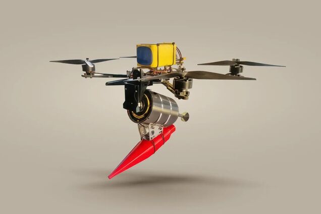 “Квадрокоптер має легку раму, обладнаний високопродуктивними двигунами, ємнісним акумулятором та оптоволоконним каналом управління. Потужності бойового заряду, який несе цей дрон, достатньо для ураження тактичних автомобілів, вогневих позиції та складів боєприпасів ворога”, – розповіли у Міноборони.